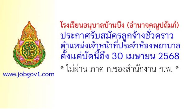 โรงเรียนอนุบาลบ้านบึง (อำนาจคณูปถัมภ์) รับสมัครลูกจ้างชั่วคราว ตำแหน่งเจ้าหน้าที่ประจำห้องพยาบาล ตั้งแต่บัดนี้ถึง 30 เมษายน 2568
