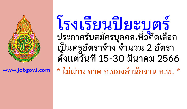 โรงเรียนปิยะบุตร์ รับสมัครบุคคลเพื่อคัดเลือกเป็นครูอัตราจ้าง 2 อัตรา ตั้งแต่วันที่ 15-30 มีนาคม 2566