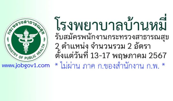 โรงพยาบาลบ้านหมี่ รับสมัครพนักงานกระทรวงสาธารณสุขทั่วไป 2 อัตรา ตั้งแต่วันที่ 13-17 พฤษภาคม 2567