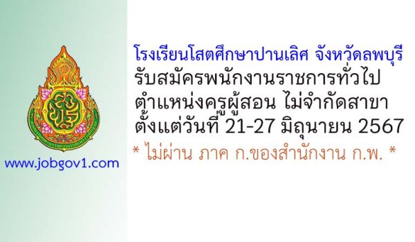 โรงเรียนโสตศึกษาปานเลิศ จังหวัดลพบุรี รับสมัครพนักงานราชการทั่วไป ตำแหน่งครูผู้สอน ไม่จำกัดสาขา ตั้งแต่วันที่ 21-27 มิถุนายน 2567