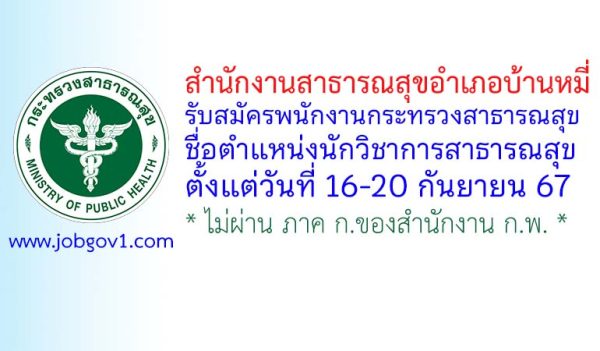 สำนักงานสาธารณสุขอำเภอบ้านหมี่ รับสมัครพนักงานกระทรวงสาธารณสุขทั่วไป ตำแหน่งนักวิชาการสาธารณสุข ตั้งแต่วันที่ 16-20 กันยายน 2567