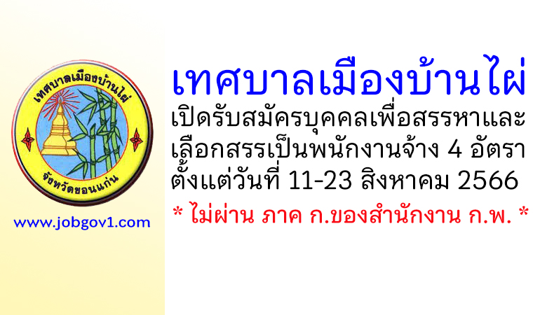 เทศบาลเมืองบ้านไผ่ รับสมัครบุคคลเพื่อสรรหาและเลือกสรรเป็นพนักงานจ้าง 4 อัตรา