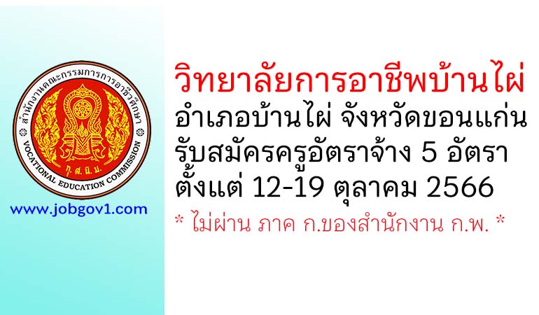 วิทยาลัยการอาชีพบ้านไผ่ รับสมัครครูอัตราจ้าง จำนวน 5 อัตรา ตั้งแต่วันที่ 12-19 ตุลาคม 2566
