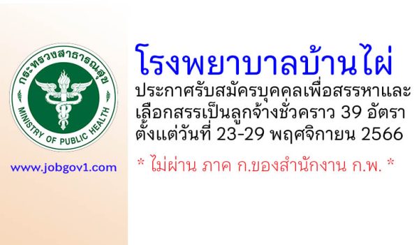 โรงพยาบาลบ้านไผ่ รับสมัครบุคคลเพื่อสรรหาและเลือกสรรเป็นลูกจ้างชั่วคราว 39 อัตรา ตั้งแต่วันที่ 23-29 พฤศจิกายน 2566
