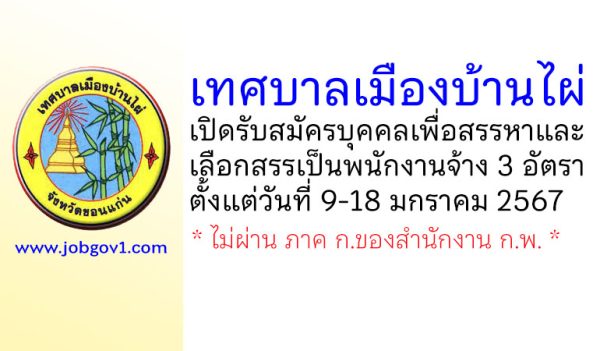 เทศบาลเมืองบ้านไผ่ รับสมัครบุคคลเพื่อสรรหาและเลือกสรรเป็นพนักงานจ้าง 3 อัตรา ตั้งแต่วันที่ 9-18 มกราคม 2567