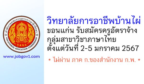 วิทยาลัยการอาชีพบ้านไผ่ รับสมัครครูอัตราจ้าง กลุ่มวิชาภาษาไทย ตั้งแต่วันที่ 2-5 มกราคม 2567