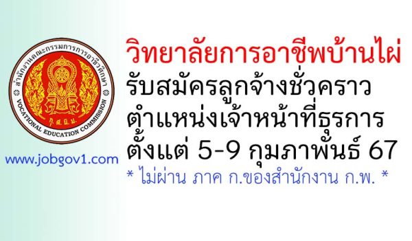 วิทยาลัยการอาชีพบ้านไผ่ รับสมัครลูกจ้างชั่วคราว ตำแหน่งเจ้าหน้าที่ธุรการ ตั้งแต่วันที่ 5-9 กุมภาพันธ์ 2567