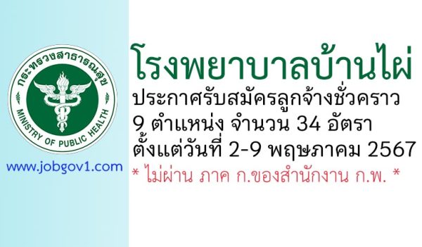 โรงพยาบาลบ้านไผ่ รับสมัครลูกจ้างชั่วคราว 34 อัตรา ตั้งแต่วันที่ 2-9 พฤษภาคม 2567