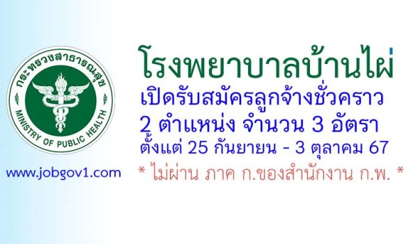 โรงพยาบาลบ้านไผ่ รับสมัครลูกจ้างชั่วคราว 3 อัตรา ตั้งแต่ 25 กันยายน – 3 ตุลาคม 2567