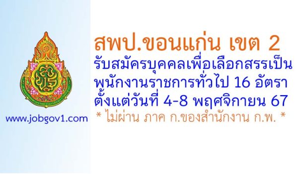 สพป.ขอนแก่น เขต 2 รับสมัครบุคคลเพื่อเลือกสรรเป็นพนักงานราชการทั่วไป 16 อัตรา ตั้งแต่วันที่ 4-8 พฤศจิกายน 2567
