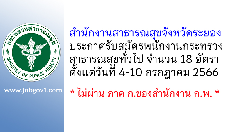 สำนักงานสาธารณสุขจังหวัดระยอง รับสมัครพนักงานกระทรวงสาธารณสุขทั่วไป 18 อัตรา ตั้งแต่วันที่ 4-10 กรกฎาคม 2566