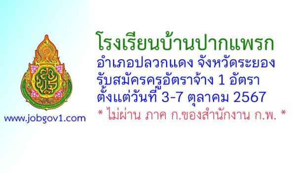 โรงเรียนบ้านปากแพรก รับสมัครครูอัตราจ้าง จำนวน 1 อัตรา ตั้งแต่วันที่ 3-7 ตุลาคม 2567