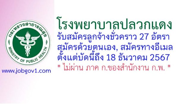 โรงพยาบาลปลวกแดง รับสมัครลูกจ้างชั่วคราว 27 อัตรา ตั้งแต่บัดนี้ถึง 18 ธันวาคม 2567