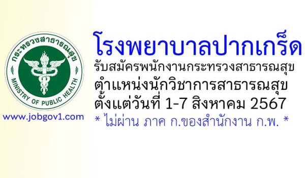 โรงพยาบาลปากเกร็ด รับสมัครพนักงานกระทรวงสาธารณสุขทั่วไป ตำแหน่งนักวิชาการสาธารณสุข ตั้งแต่วันที่ 1-7 สิงหาคม 2567