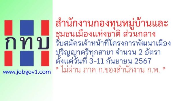 สำนักงานกองทุนหมู่บ้านและชุมชนเมืองแห่งชาติ รับสมัครเจ้าหน้าที่โครงการพัฒนาเมือง 2 อัตรา ตั้งแต่วันที่ 3-11 กันยายน 2567