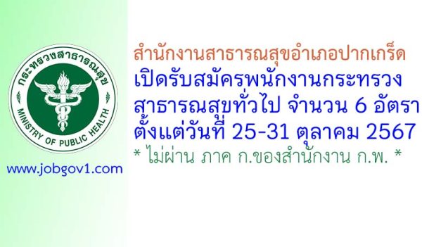 สำนักงานสาธารณสุขอำเภอปากเกร็ด รับสมัครพนักงานกระทรวงสาธารณสุขทั่วไป 6 อัตรา ตั้งแต่วันที่ 25-31 ตุลาคม 2567