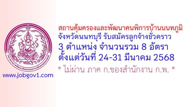 สถานคุ้มครองและพัฒนาคนพิการบ้านนนทภูมิ จังหวัดนนทบุรี รับสมัครลูกจ้างชั่วคราว 8 อัตรา ตั้งแต่วันที่ 24-31 มีนาคม 2568