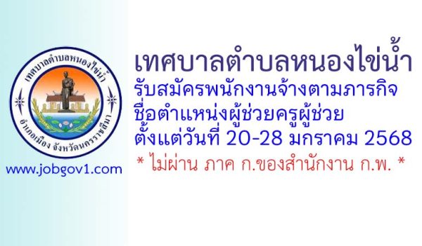 เทศบาลตำบลหนองไข่น้ำ รับสมัครพนักงานจ้างตามภารกิจ ตำแหน่งผู้ช่วยครูผู้ช่วย ตั้งแต่วันที่ 20-28 มกราคม 2568