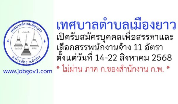 เทศบาลตำบลเมืองยาว รับสมัครบุคคลเพื่อสรรหาและเลือกสรรพนักงานจ้าง 11 อัตรา ตั้งแต่วันที่ 14-22 สิงหาคม 2568
