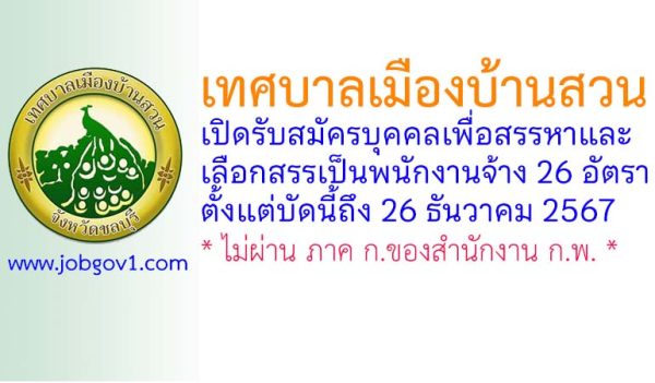 เทศบาลนครบ้านสวน รับสมัครบุคคลเพื่อสรรหาและเลือกสรรเป็นพนักงานจ้าง 54 อัตรา ตั้งแต่วันที่ 13-21 สิงหาคม 2568