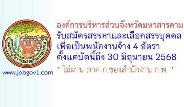 องค์การบริหารส่วนจังหวัดมหาสารคาม รับสมัครสรรหาและเลือกสรรบุคคลเพื่อเป็นพนักงานจ้าง 4 อัตรา ตั้งแต่บัดนี้ถึง 30 มิถุนายน 2568