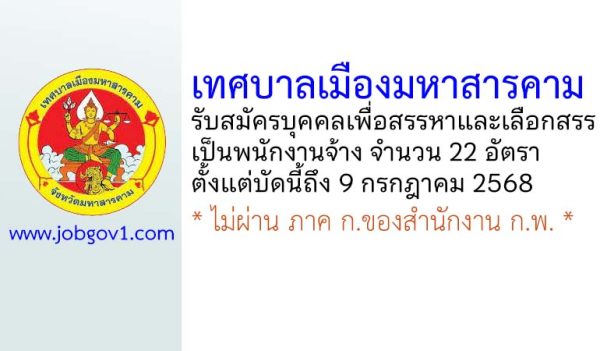 เทศบาลเมืองมหาสารคาม รับสมัครบุคคลเพื่อสรรหาและเลือกสรรเป็นพนักงานจ้าง 22 อัตรา ตั้งแต่บัดนี้ถึง 9 กรกฎาคม 2568