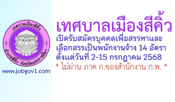 เทศบาลเมืองสีคิ้ว รับสมัครบุคคลเพื่อสรรหาและเลือกสรรเป็นพนักงานจ้าง 14 อัตรา ตั้งแต่วันที่ 2-15 กรกฎาคม 2568