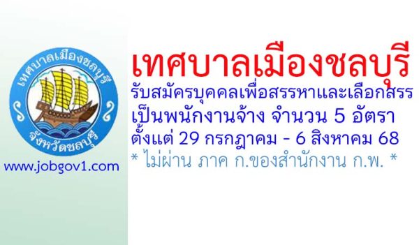 เทศบาลเมืองชลบุรี รับสมัครบุคคลเพื่อสรรหาและเลือกสรรเป็นพนักงานจ้าง 5 อัตรา ตั้งแต่ 29 กรกฎาคม – 6 สิงหาคม 2568