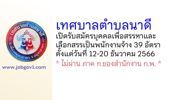 เทศบาลตำบลนาดี รับสมัครบุคคลเพื่อสรรหาและเลือกสรรเป็นพนักงานจ้าง 39 อัตรา ตั้งแต่วันที่ 12-20 ธันวาคม 2566