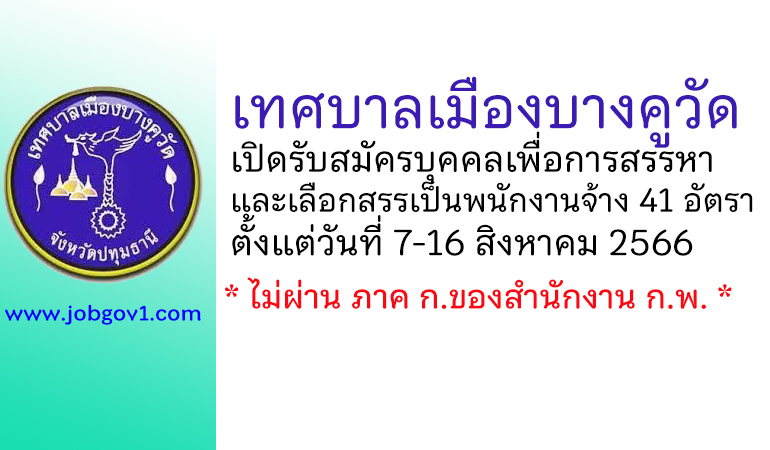 เทศบาลเมืองบางบัวทอง รับสมัครบุคคลเพื่อสรรหาและเลือกสรรเป็นพนักงานจ้าง 31 อัตรา