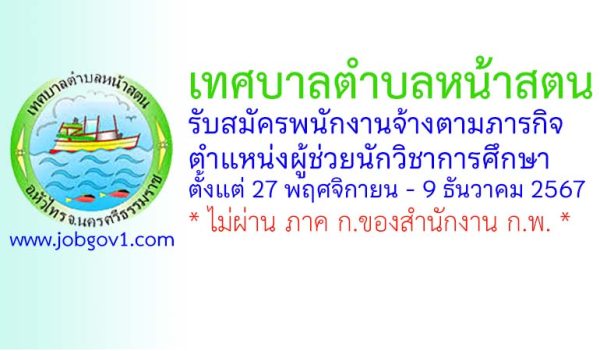 เทศบาลตำบลหน้าสตน รับสมัครพนักงานจ้างตามภารกิจ ตำแหน่งผู้ช่วยนักวิชาการศึกษา ตั้งแต่ 27 พฤศจิกายน – 9 ธันวาคม 2567