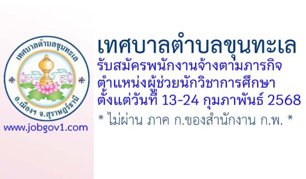 เทศบาลตำบลขุนทะเล รับสมัครพนักงานจ้างตามภารกิจ ตำแหน่งผู้ช่วยนักวิชาการศึกษา ตั้งแต่วันที่ 13-24 กุมภาพันธ์ 2568