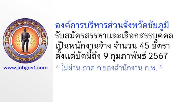 องค์การบริหารส่วนจังหวัดชัยภูมิ รับสมัครสรรหาและเลือกสรรบุคคลเป็นพนักงานจ้าง 45 อัตรา ตั้งแต่บัดนี้ถึง 9 กุมภาพันธ์ 2567