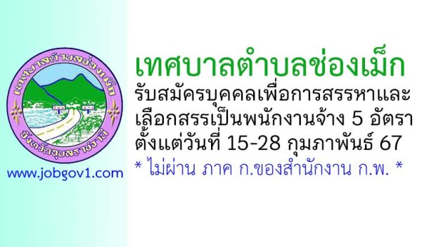 เทศบาลตำบลช่องเม็ก รับสมัครบุคคลเพื่อการสรรหาและเลือกสรรเป็นพนักงานจ้าง 5 อัตรา ตั้งแต่วันที่ 15-28 กุมภาพันธ์ 2567