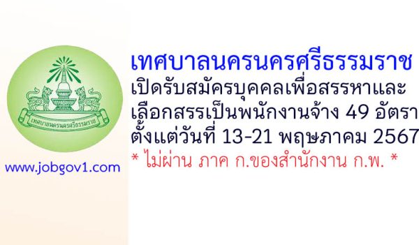 เทศบาลนครนครศรีธรรมราช รับสมัครบุคคลเพื่อสรรหาและเลือกสรรเป็นพนักงานจ้าง 49 อัตรา ตั้งแต่วันที่ 13-21 พฤษภาคม 2567