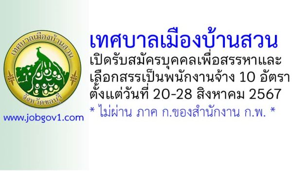 เทศบาลเมืองบ้านสวน รับสมัครบุคคลเพื่อการสรรหาและเลือกสรรเป็นพนักงานจ้าง 10 อัตรา ตั้งแต่วันที่ 20-28 สิงหาคม 2567