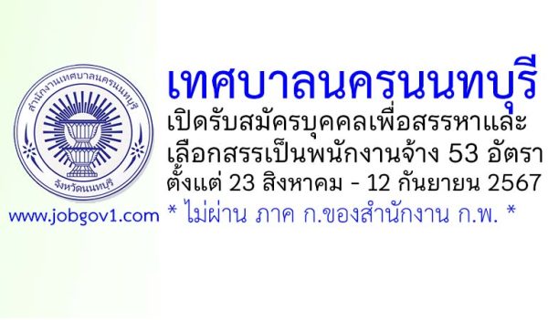 เทศบาลนครนนทบุรี รับสมัครบุคคลเพื่อสรรหาและเลือกสรรเป็นพนักงานจ้าง 53 อัตรา ตั้งแต่ 23 สิงหาคม – 12 กันยายน 2567