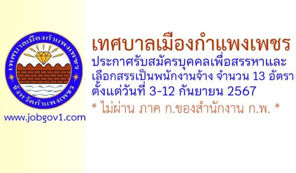 เทศบาลเมืองกำแพงเพชร รับสมัครบุคคลเพื่อการสรรหาและเลือกสรรเป็นพนักงานจ้าง 13 อัตรา ตั้งแต่วันที่ 3-12 กันยายน 2567