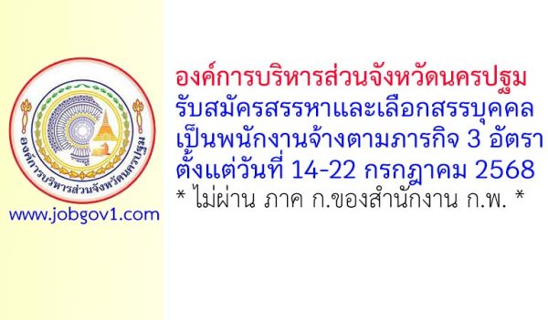 องค์การบริหารส่วนจังหวัดนครปฐม รับสมัครสรรหาและเลือกสรรบุคคลเป็นพนักงานจ้างตามภารกิจ 3 อัตรา ตั้งแต่วันที่ 14-22 กรกฎาคม 2568