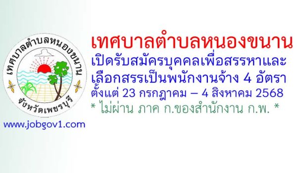 เทศบาลตำบลหนองขนาน รับสมัครบุคคลเพื่อสรรหาและเลือกสรรเป็นพนักงานจ้าง 4 อัตรา ตั้งแต่ 23 กรกฎาคม – 4 สิงหาคม 2568