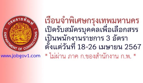เรือนจำกลางคลองเปรม รับสมัครบุคคลเพื่อเลือกสรรเป็นพนักงานราชการทั่วไป 4 อัตรา