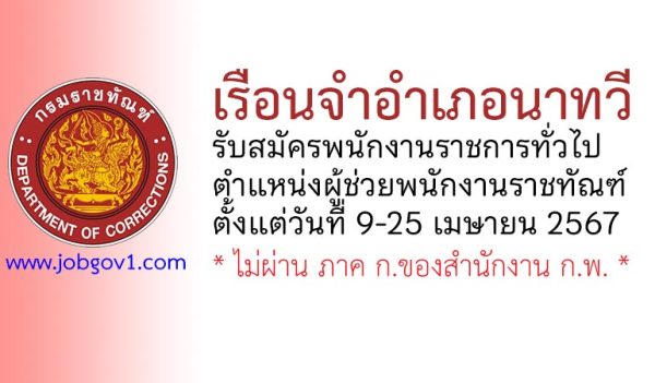 เรือนจำจังหวัดกระบี่ รับสมัครพนักงานราชการทั่วไป ตำแหน่งผู้ช่วยพนักงานราชทัณฑ์ (ชาย)