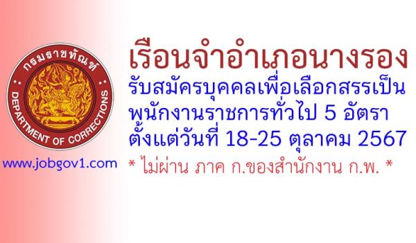 เรือนจำจังหวัดระนอง รับสมัครบุคคลเพื่อเลือกสรรเป็นพนักงานราชการทั่วไป 5 อัตรา