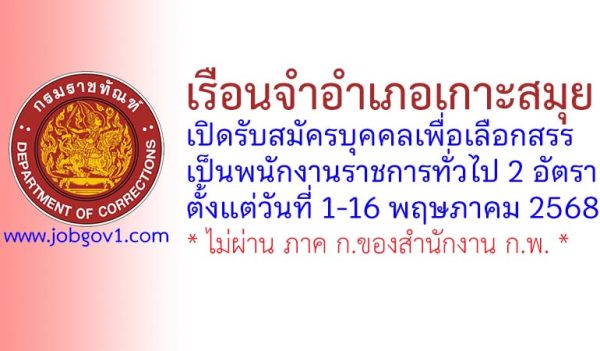 เรือนจำกลางสุราษฎร์ธานี รับสมัครบุคคลเพื่อเลือกสรรเป็นพนักงานราชการทั่วไป 3 อัตรา ตั้งแต่วันที่ 14 -28 ตุลาคม 2568