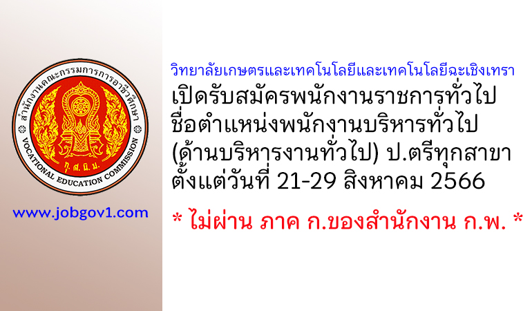 วิทยาลัยเกษตรและเทคโนโลยีและเทคโนโลยีฉะเชิงเทรา รับสมัครพนักงานราชการทั่วไป ตำแหน่งพนักงานบริหารทั่วไป (ด้านบริหารงานทั่วไป)