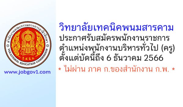 วิทยาลัยเทคนิคพนมสารคาม รับสมัครพนักงานราชการ ตำแหน่งพนักงานบริหารทั่วไป (ครู) ตั้งแต่บัดนี้ถึง 6 ธันวาคม 2566