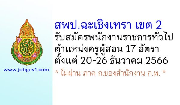สพป.ฉะเชิงเทรา เขต 2 รับสมัครพนักงานราชการทั่วไป ตำแหน่งครูผู้สอน 17 อัตรา ตั้งแต่วันที่ 20-26 ธันวาคม 2566