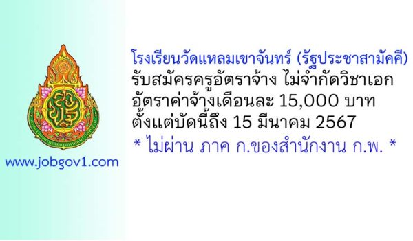 โรงเรียนวัดแหลมเขาจันทร์ (รัฐประชาสามัคคี) รับสมัครครูอัตราจ้าง ไม่จำกัดวิชาเอก ตั้งแต่บัดนี้ถึง 15 มีนาคม 2567