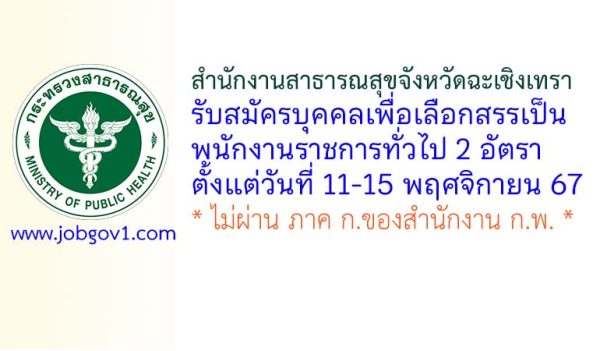 สำนักงานสาธารณสุขจังหวัดฉะเชิงเทรา รับสมัครบุคคลเพื่อเลือกสรรเป็นพนักงานราชการทั่วไป 2 อัตรา ตั้งแต่วันที่ 11-15 พฤศจิกายน 2567