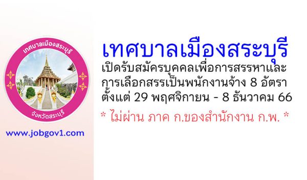 เทศบาลเมืองสระบุรี รับสมัครบุคคลเพื่อสรรหาและเลือกสรรเป็นพนักงานจ้าง 31 อัตรา